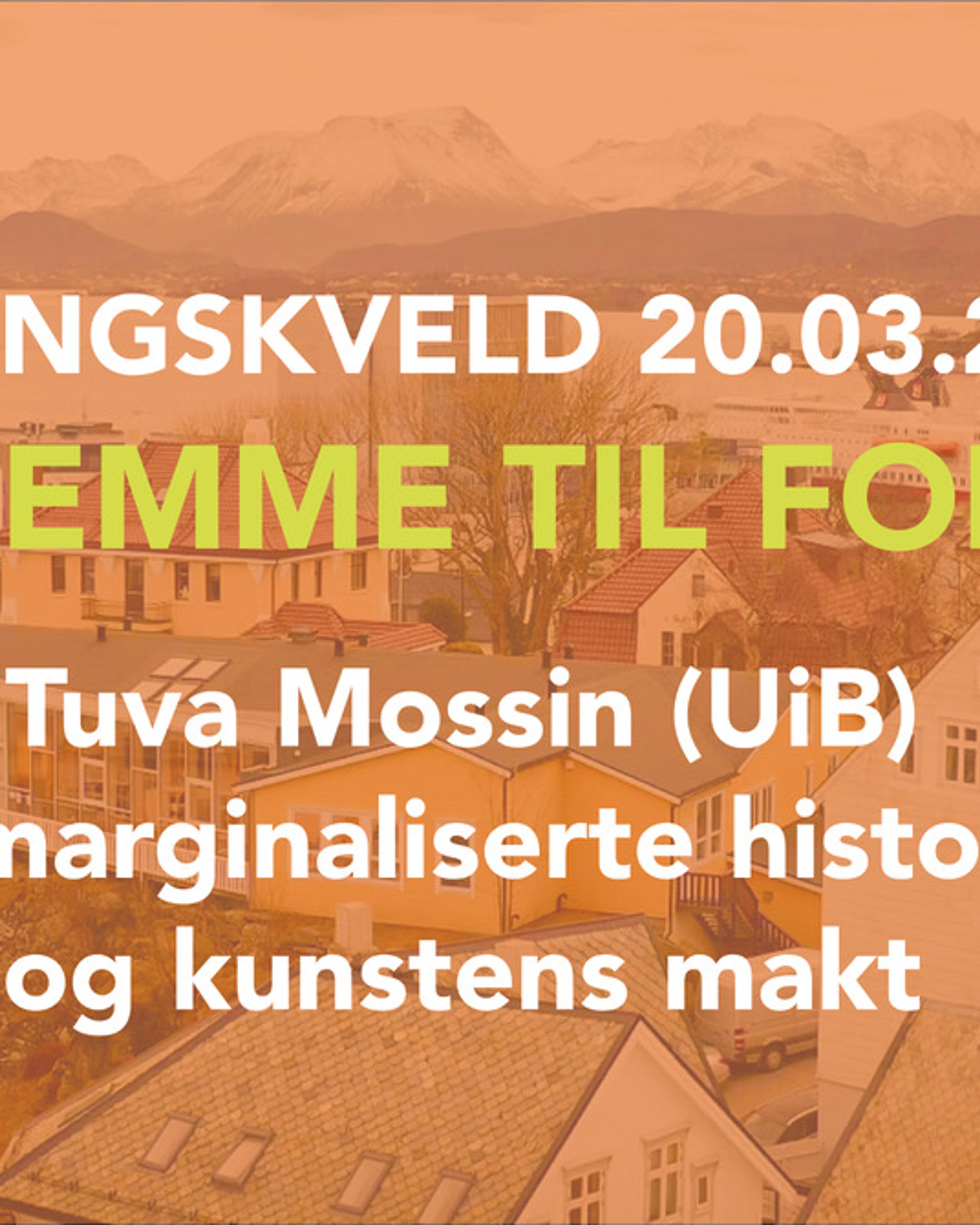 Foredraget vil vare i 60 minutter, etterfulgt av en samtale mellom Mossin og Mariell Sørhaug, koordinator og kunstteorilærer ved Ytre kunstfagskole. Publikum inviteres til å delta i diskusjonen.
